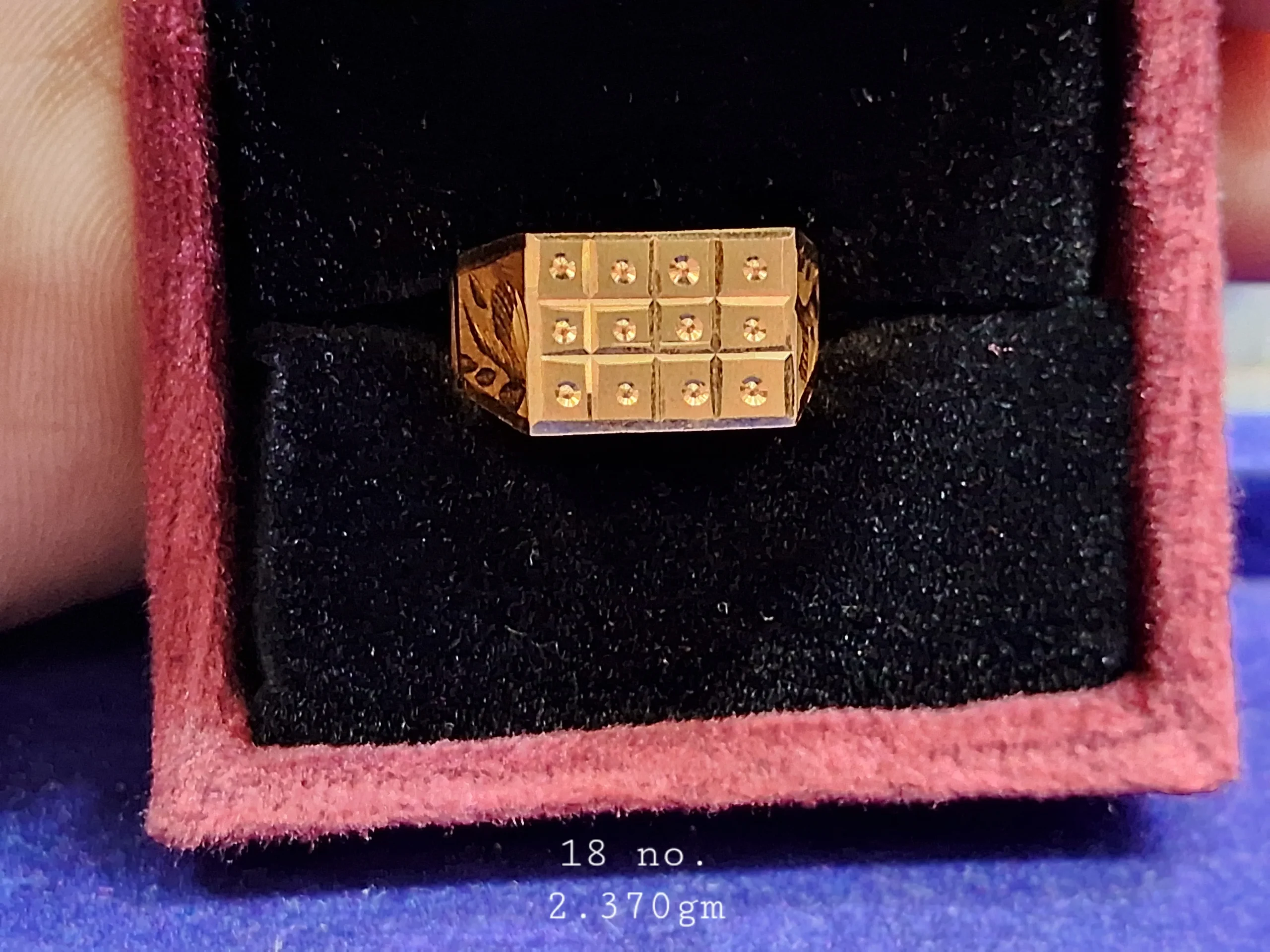 The ring is size 18 and weighs 2.370 grams.