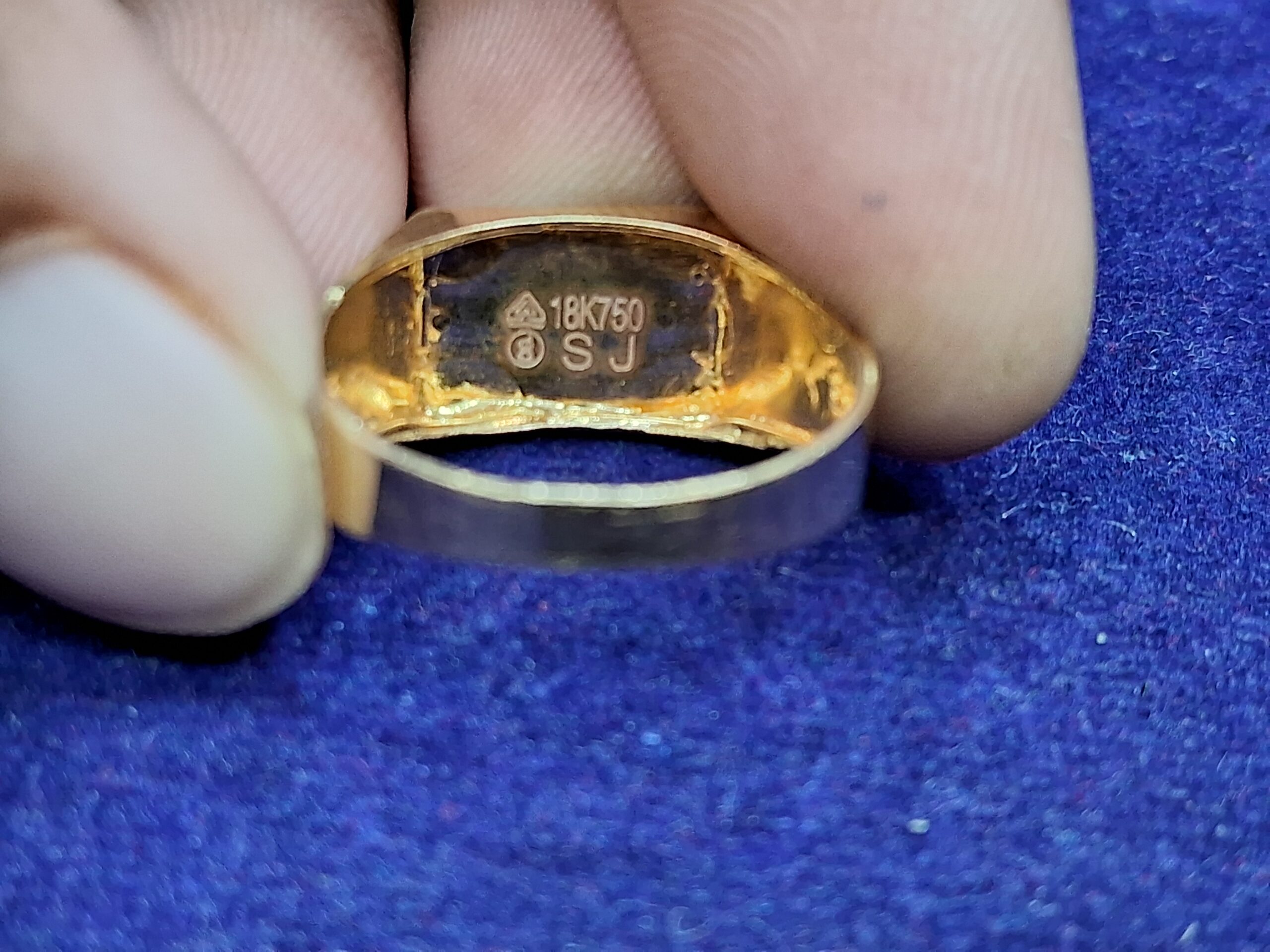 The ring size is no. 19 and weighs 1.400 grams, crafted from gold. The overall design gives a modern yet elegant look, making it suitable for stylish and sophisticated wear.